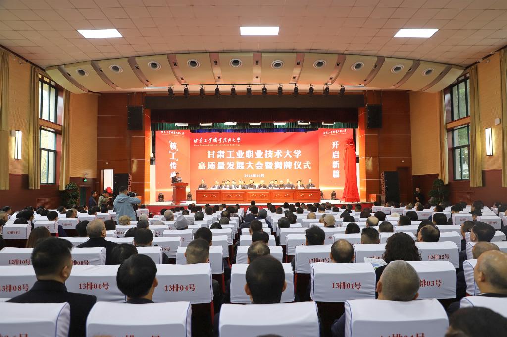 弦歌不辍,砥砺前行。10月16日,甘肃工业职业技术大学高质量发展大会暨揭牌仪式在学校大学生活动中心举行。省、市相关部门领导,兄弟院校、合作企业代表及学校师生齐聚一堂,共同见证这一历史性时刻。仪式由校长张利军主持。