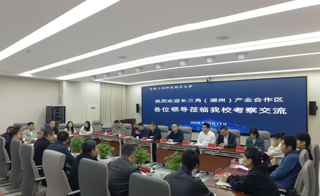 长三角(湖州)产业合作区党工委副书记、管委会主任王伟新一行到校指导。学校党委副书记刘乃君出席座谈会,招就处、各二级学院负责人参加。