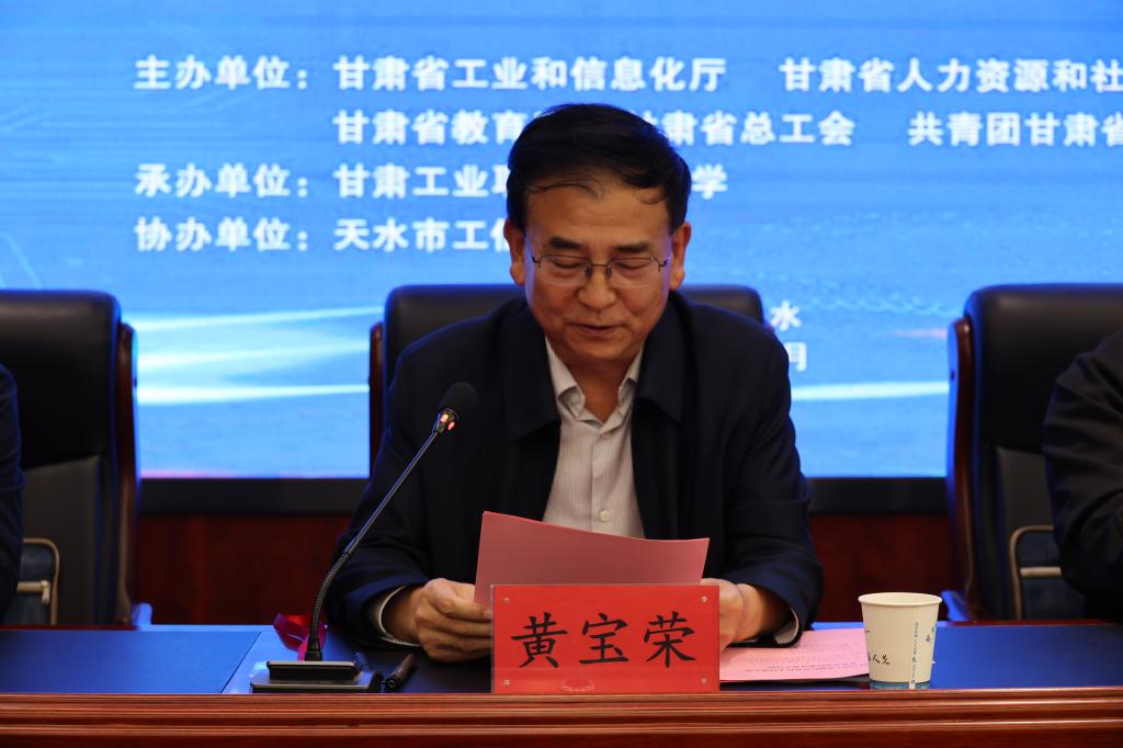 最后,黄宝荣讲话并宣布第三届全国工业和信息化技术技能大赛甘肃选拔赛比赛开赛。