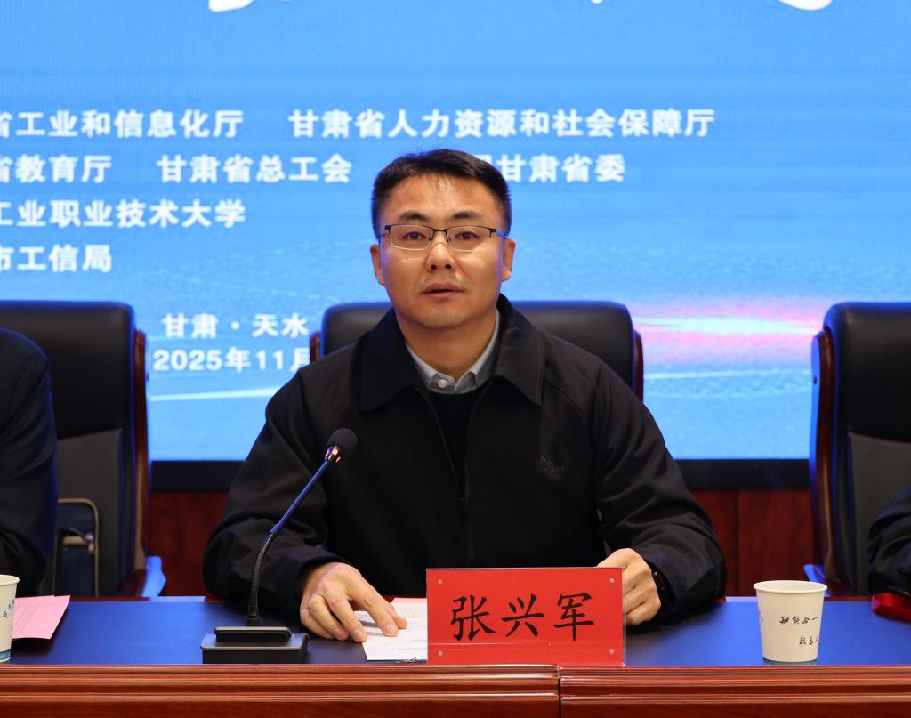 开幕式上,张兴军在致辞中代表天水市委市政府向大赛顺利举办表示祝贺,并就天水市近年来工业和信息化发展情况作了介绍。他表示,本次大赛聚焦工业互联网安全、汽车芯片开发、工业大数据算法等前沿领域,精准对接制造强国战略,既是检验技能人才水平的“大考场”,更是推动产业创新发展的“风向标”。期待各位选手以赛为媒、以技会友,拿出看家本领、展现精湛技艺,在工业互联网创新应用、制造业数字化转型等赛项中奋勇拼搏、争创佳绩;天水市也将以此契机,进一步架起“政校企行”深度合作的桥梁,吸引更多先进技术成果在天水转化落地,吸引更多优秀技能人才来天水创新创业,为天水高质量发展注入新的生机与活力。