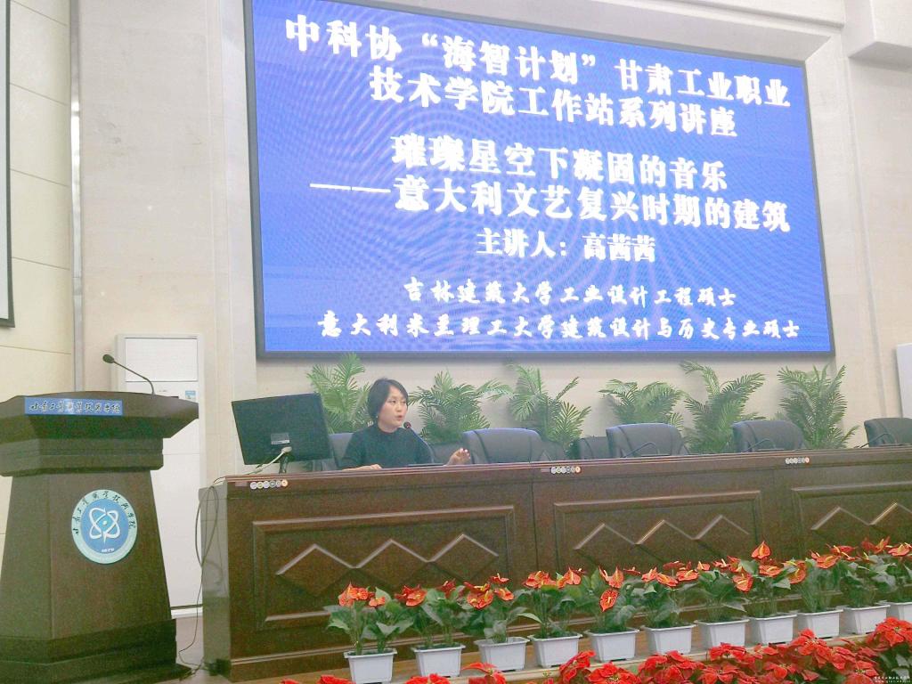 6月27日晚,我校在图书馆五楼报告厅举办了中科协“ 海智计划”系列讲座:“璀璨星空下凝固的音乐——意大利文艺复兴时期的建筑”。主讲人是毕业于意大利米兰理工大学建筑设计与历史专业硕士高茜茜。校党委书记杨声和我校海智工作站、科研处、建筑学院教师及学生共200多人聆听了讲座。