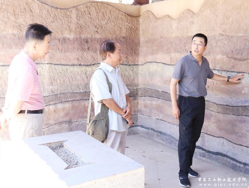8月12日,甘肃省人民政府文史研究馆研究员及民革甘肃省画院副院长韩书毅、甘肃省工艺美术协会秘书长刘德春、甘肃省工艺美朮质检站站长聂红梅一行莅临我校,在校长曹爱明的陪同下参观了“一带一路产教融合”双创学院、全景“仿真综合性实训基地”地质园。