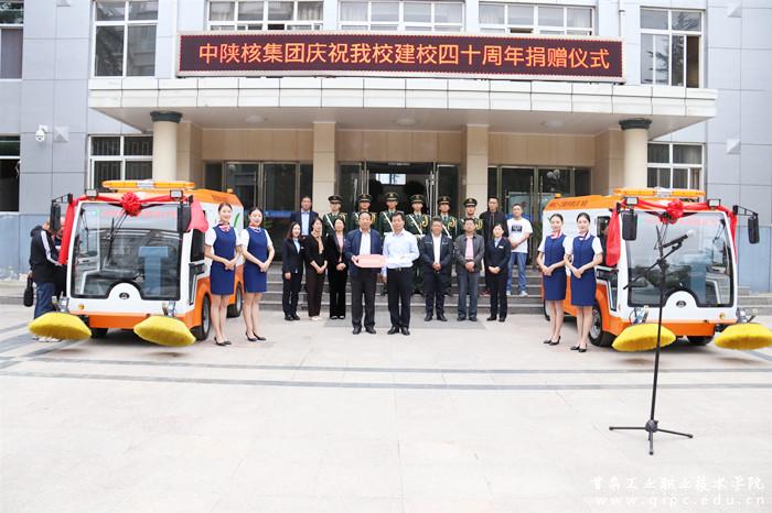在我校建校40周年之际,中陕核工业集团向我校捐赠了价值52万元的两台清扫车。9月12日下午,捐赠仪式在行政楼前隆重举行。