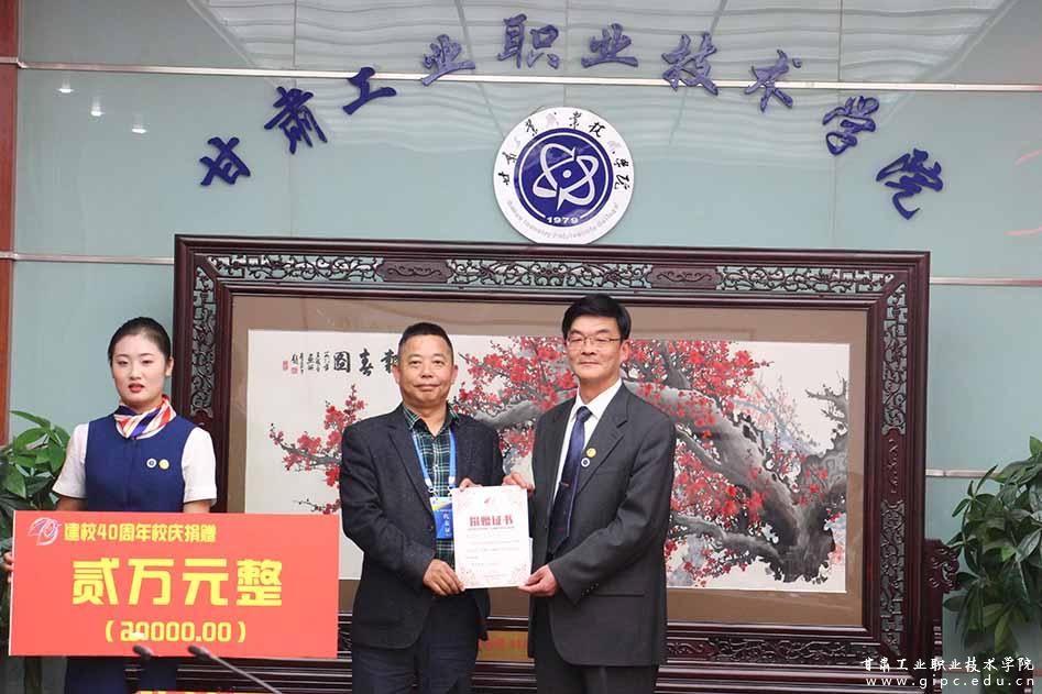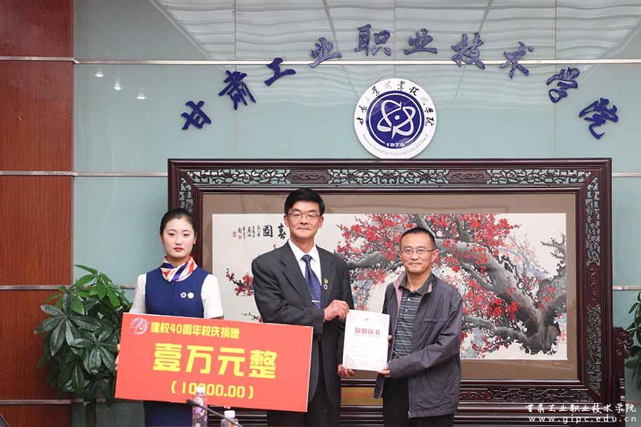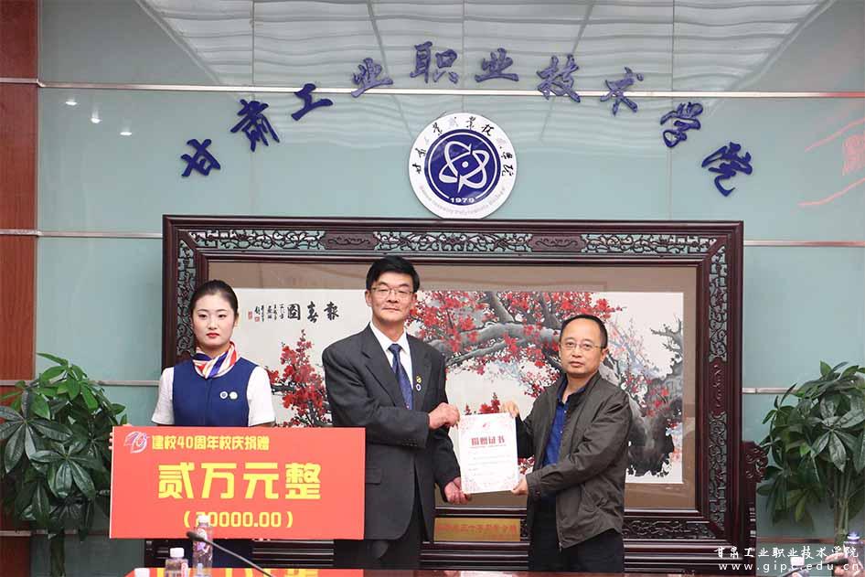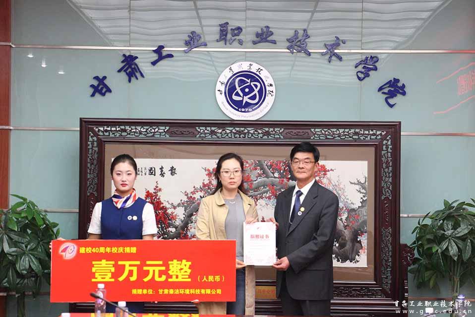 来自内蒙古维邦日新电子科技有限公司、江苏宇邦工业自动化系统有限公司、甘肃第七建设集团有限公司、甘肃日新电子科技有限公司、北京凯蓝盛世品牌管理有限公司、甘肃东煜集团、天水六九一三电子科技有限公司、甘肃丰收农业科技有限公司、新疆天业(集团)有限公司、甘肃秦洁环境科技有限公司、核工业地质局二八一大队、核工业地质局二八二大队、核工业地质局二八三大队、四川省核工业地质局、成都片区校友会、江西省核工业地质局二六三大队校友会、中国移动天水分公司、中国联通天水分公司、天津劲松护养院、北京校友会、广东校友会等多家企业和优秀校友严智敏向学校捐赠。