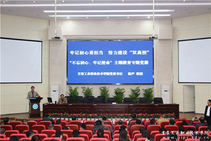10月23日下午,pg娱乐电子游戏“不忘初心、牢记使命”主题教育专题党课在学校图书馆五楼报告厅举行,pg娱乐电子游戏校党委书记杨声作题为《牢记初心勇担当、努力建设“双高校”》的专题党课辅导。省委“不忘初心、牢记使命”主题教育第六巡回指导组海洋同志到场指导。全校党员干部、教师和学生入党积极分子近300人参加了党课学习。