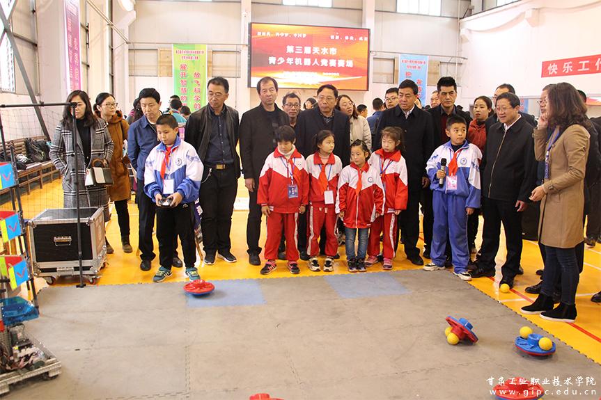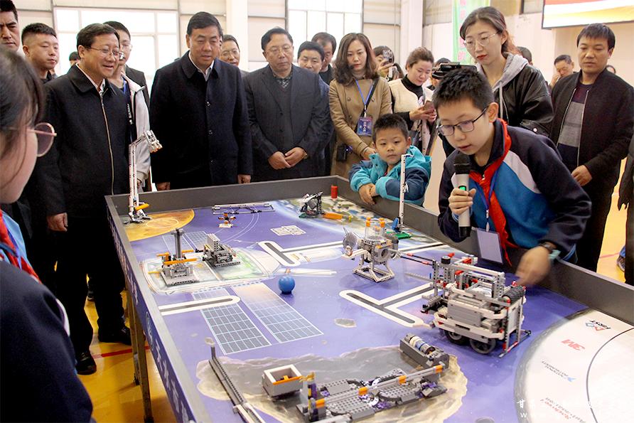 天水市政府副市长逯克宗讲话,他指出,青少年科技创新大赛暨机器人竞赛是青少年科技教育和科普工作的重要组成部分,是增强青少年创新意识、提高青少年科技素养的有效途径。本届青少年科技创新大赛暨机器人竞赛的举办,是我市青少年创新教育工作近两年取得多方面突破的基础上进入的一个新的发展阶段。广大青少年要树立攀登科技高峰的远大志向,勤奋学习,刻苦钻研,在科技创新活动中充分发挥聪明才智,不断提升创新本领,为成长为高素质的社会主义建设者和中华民族伟大复兴的追梦者打下坚实基础。