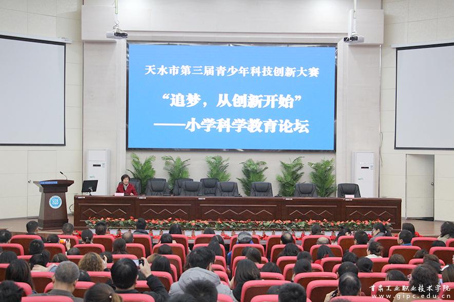 11月10日上午,由pg娱乐电子游戏承办,天水市科学技术协会、天水市教育局主办的天水市第三届青少年科技创新大赛小学科学教育论坛在学校图书馆五楼报告厅举行,全市两区五县、市直学校的学生代表和教师参加。天水青少年科技教育协会理事长、天水逸夫实验中学校长沈建玲主持。