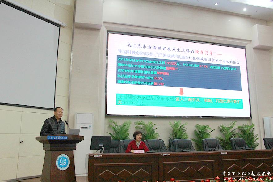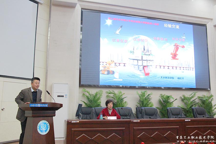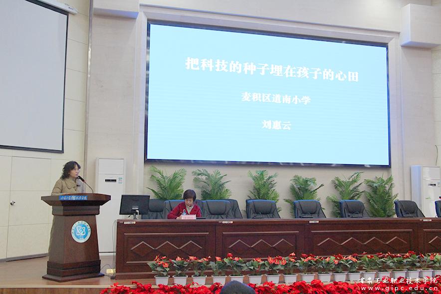 天水师范学院教师代表杨红平教授,就青少年科技创新国赛与市赛分析、科技创新解读、人工智能解读和天水师范学院科技园四个方面,从动机、兴趣、意志三个因素出发,为广大青少年如何培养科技创新能力答疑解惑。