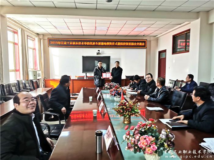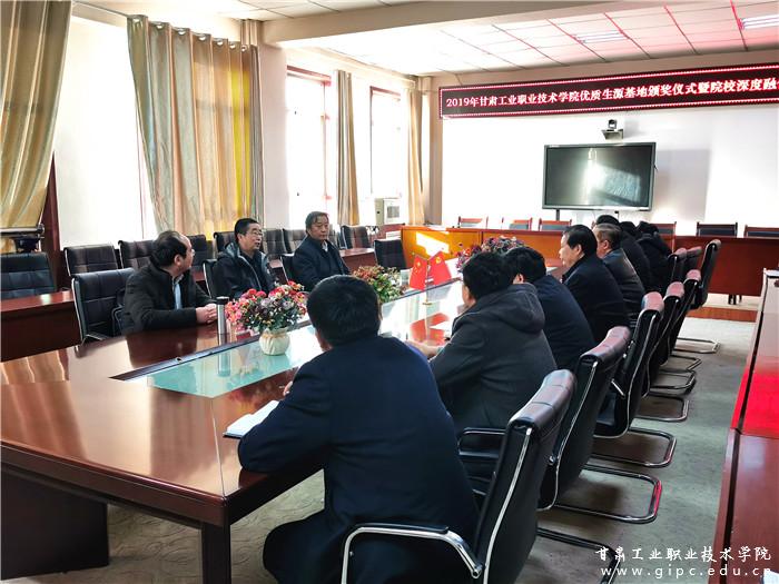 曹爱明校长为靖远县职业中等专业学校颁发了2019年优质生源基地荣誉证书,并在靖远县职业中等专业学校校长邹占才、副校长王东成、崔政、张志栋等校领导的陪同下参观了校园和实训室。