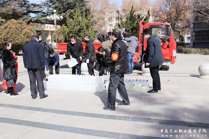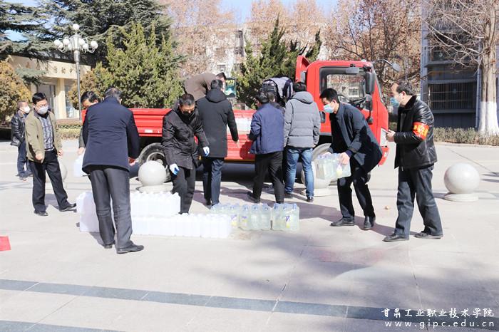 2月16日上午,天水耀鑫工贸有限公司向我校捐赠84消毒液200桶(每桶2升)、酒精100桶(每桶2升),助力学校疫情防控工作。副校长李玉生和防控办、学工处、保卫处等部门负责人代表学校接受捐赠并表示感谢。