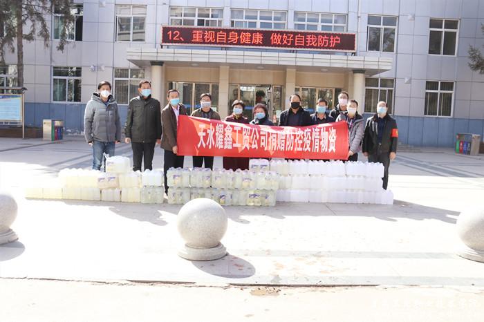 当前疫情防控进入关键时期,各行各业对消毒液等应急物资需求量猛增。在了解到学校疫情防控物资紧缺后,天水耀鑫工贸有限公司伸出援手,捐赠我校急需防疫物资,这种爱心和善举令人钦佩,让人感动,充分体现了企业的担当作为和社会责任,同时为学校战胜疫情增添了力量和信心。相信在大家的共同努力下,一定能够打赢疫情防控阻击战。