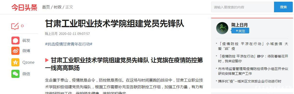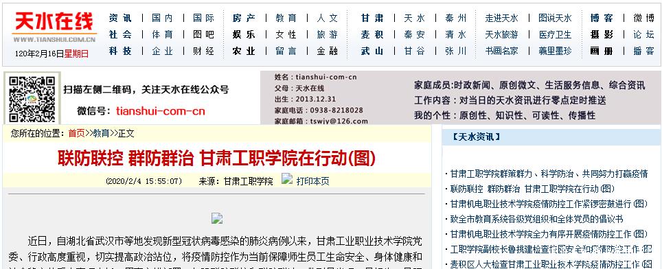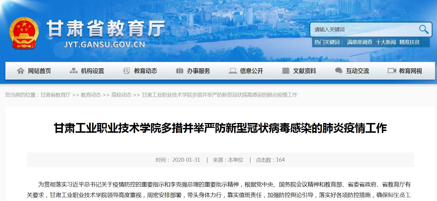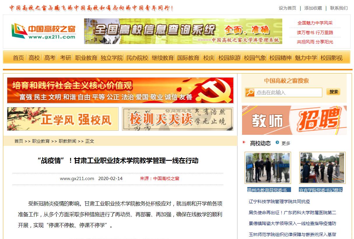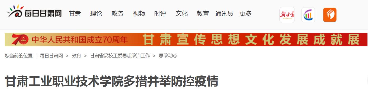 学校师生疫情防控中的先进做法,甘肃省教育厅官网报道1次,每日甘肃、中国教育在线、中国高校之窗、今日头条、天水在线和新天水等各级媒体也进行了关注,报道多达20余次。有效地扩大了学校战“疫”工作的社会影响,为学校发展赢得了较好的外部舆论氛围。