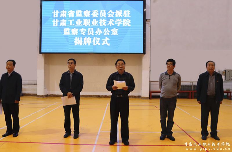 5月7日上午,甘肃省监察委员会派驻pg娱乐电子游戏监察专员办公室揭牌仪式在学校体育馆举行。学校在家党委班子成员、纪委委员、各党总支、直属支部书记、各职能部门负责人、纪检监察室新配人员参加了会议。揭牌仪式由校党委副书记、校长曹爱明主持。