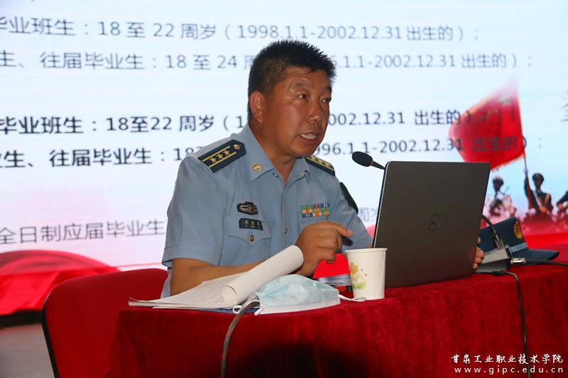 为深入贯彻落实全国大学生征兵工作会议精神,帮助大学生进一步了解征兵政策,鼓励引导大学生携笔从戎,投身军营,激发大学生参军入伍积极性,6月9日下午,学校邀请麦积区武装部部长李根来同志一行为我校大学生做2020年入伍政策宣讲报告,校党委副书记郭建忠同志出席,校武装部全体人员及部分学生代表300余人聆听报告。