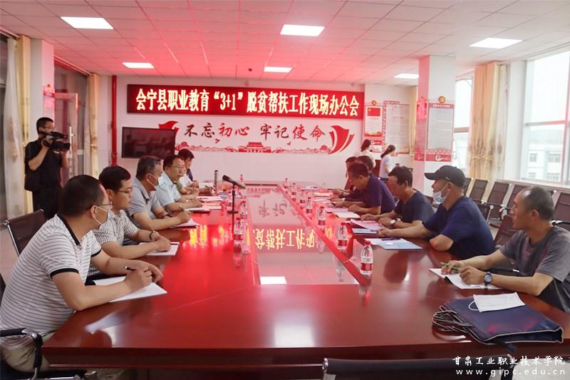 为深入贯彻落实甘肃省省委、省政府打赢脱贫攻坚战的部署及省教育厅《关于深入推进职业教育“3+1”脱贫工作的通知》文件精神,深化职业教育发展,助推职业教育扶贫,提升办学质量与办学效益。7月3日,天津海运职业技术学院党委副书记曹晓发、教务处副处长王浩,pg娱乐电子游戏党委书记杨声、党委副书记郭建忠及学校办公室、扶贫办公室负责人一行6人赴会宁开展职业教育“3+1”脱贫帮扶工作,与会宁县教育局副局长张斌、会宁职业教育中心校长牛克敏、郭城农业中学校长张克礼及相关部门负责人进行座谈交流。