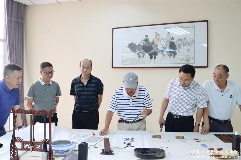 为弘扬传统文化,普及我国的书法艺术,丰富我校校园文化建设,7月28日,浙江金华职业技术学院原党委书记、中国书法家协会会员、中国美术家协会会员、中国摄影家协会会员、美术学博士杜世禄教授来我校参观交流。学校党委书记杨声、图书馆馆长赵新博、地质博物馆馆长徐汉南陪同参观。学校相关人员参与交流。