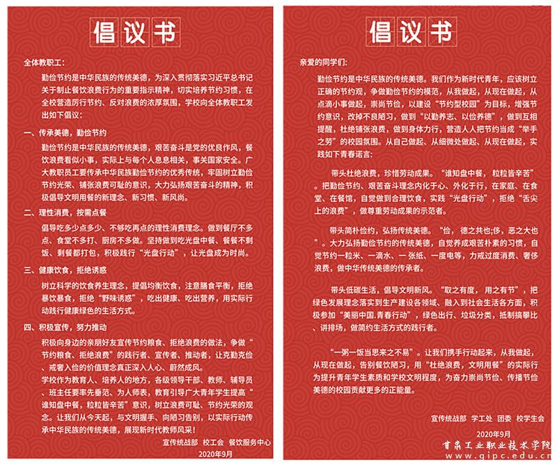 近日,为认真贯彻落实好习近平总书记关于厉行节约、制止餐饮浪费行为的重要指示精神,学校党委高度重视、周密部署,全校师生迅速行动、集结发力,以多种形式深入学习贯彻,以实际行动践行习近平总书记重要指示精神,弘扬中华民族勤俭节约的传统美德。