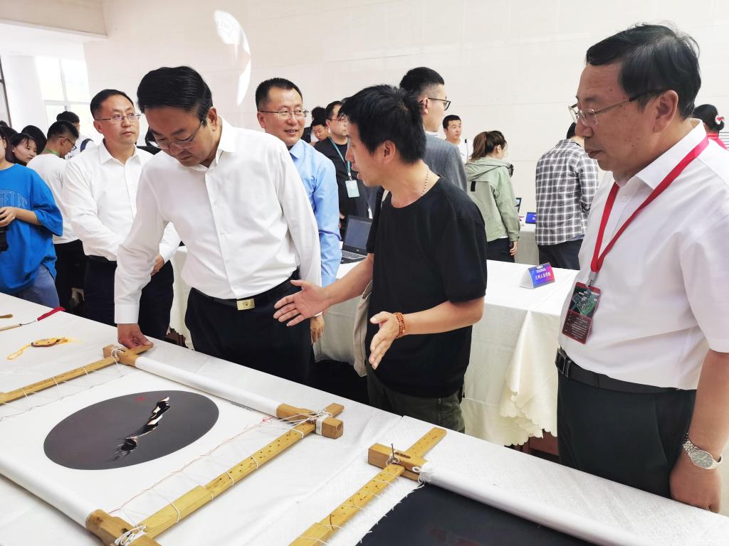 闭幕式结束后,甘肃省副省长张世珍、省教育厅副厅长张国珍、高教处处长张发旺同志参观了我校民间艺术大师刘云帆的陇绣珍藏品。张世珍指出,pg娱乐电子游戏在非遗传承人的培养、非遗文化创意产品研发等方面成绩突出,为我省推动非物质文化遗产的保护、传承、创新和发展提供了技术技能人才支撑。希望pg娱乐电子游戏继续加大力度培养具有新时代工匠精神和创新创业能力的非遗传承人,一定要将我们甘肃省的非遗文化传承下去,使之走向全国乃至世界。