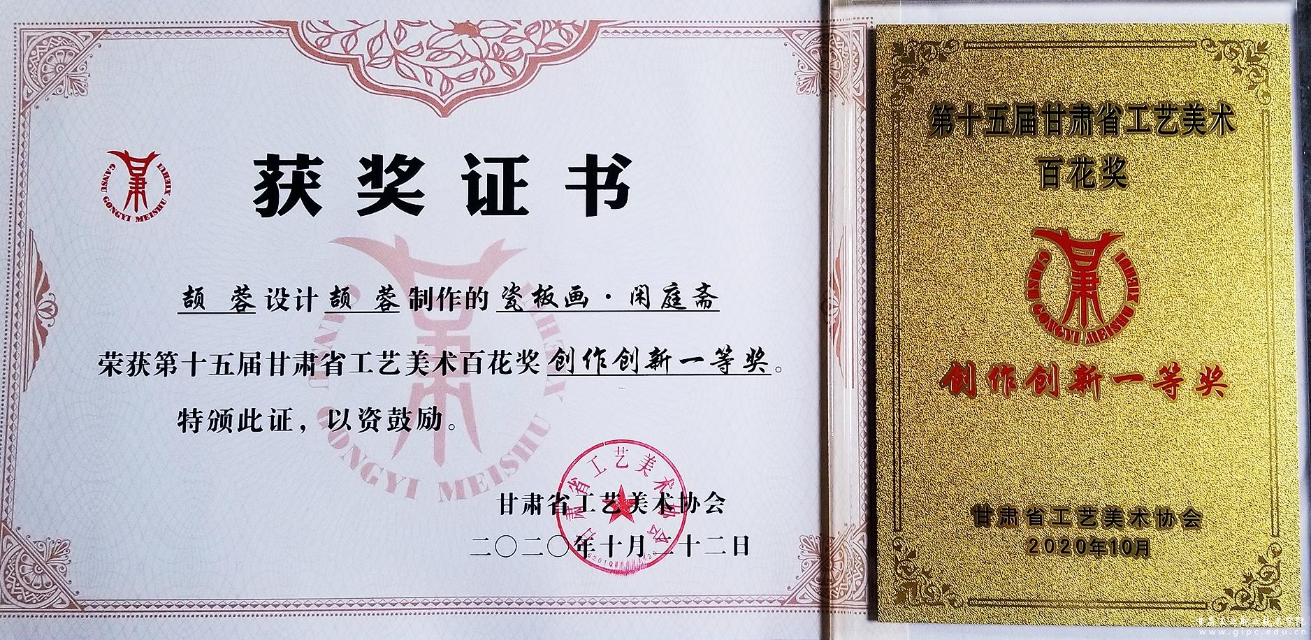 10月25日,由甘肃省工艺美术协会、兰州职业技术学院、甘肃易琛工艺美术有限责任公司共同举办的第十五届甘肃省工艺美术“百花奖”参赛作品评审在兰州职业技术学院落下帷幕,我校艺术学院颉蓉老师的参赛瓷板画作品《闲庭斋》荣获大赛“创作创新一等奖”。