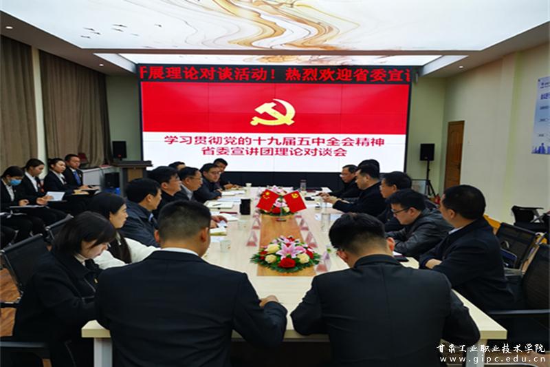 黄泽元强调,学习好、贯彻好十九届五中全会精神,广大师生要从科学把握新发展阶段、深入贯彻新发展理念、加快构建新发展格局三个方面深入学习、体会并加以落实。希望我校青年学子要培养创新精神,增强国家意识,把自己的成长与国家的发展有机结合起来,树立担当意识和历史使命,为实现中华民族伟大复兴中国梦而努力奋斗!黄泽元就职业技术教育交流了自己的观点与看法。指出,职业教育是国家教育事业的重要组成部分,也是实体经济发展人才培养的基地,具有很大的发展潜力,职业技术教育要注重技能的培养,突出办学特色,紧紧围绕国家战略、地方经济发展和学生健康全面发展目标,落实好立德树人根本任务,办好人民满意的教育。