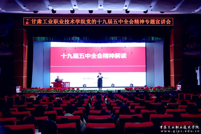宣讲会上,杨声教授从全会的召开背景、主要成果、《建议》《公报》起草情况、突出特点、逻辑主线、内容要点、核心要义、必须坚持党的全面领导等八个方面进行了重点解读。解读的八个方面脉络清晰、生动形象、重点突出、切合实际,特别是将“十四五”时期的工作要求与我校的具体实际联系起来,强调职业教育发展要不断推动专业升级,加强产教融合、校企合作,积极服务于国家战略和地方经济发展,为打造“技能甘肃”和“人才强国”提供人才支撑。