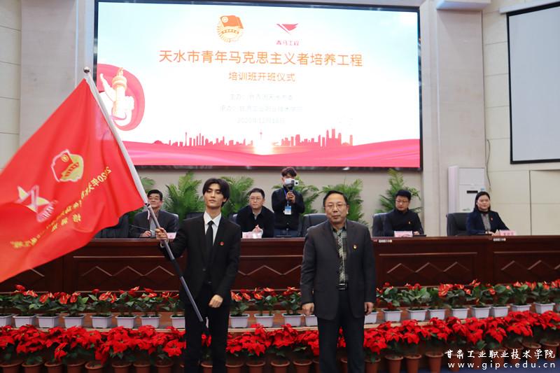在深入学习贯彻党的十九届五中全会精神之际,2020年天水市“青年马克思主义者培养工程”培训班暨我校第16期青马工程培训班开班仪式于12月18日在图书馆智敏学术报告厅举行。共青团天水市委书记李海巴、副书记赵强、宣传部部长师伟,校党委书记杨声、副书记郭建忠出席仪式,全体青马培训班学员、学生入党积极分子和团员学生代表参加仪式。开班仪式由团委书记黄晓慧主持。