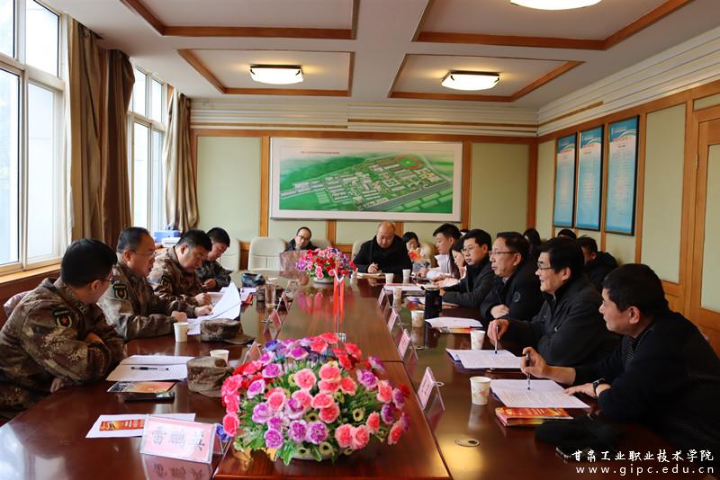 2021年一年两次征兵工作现已开展,为全面了解掌握我校征兵工作准备情况,推进征兵工作进一步落实,2021年1月6日下午,市委常委、天水军分区司令员宋英武、天水军分区动员处处长候长勤、军分区动员处参谋梅顺安、麦积区武装部司令员李根来一行代表天水市征兵办公室对我校征兵工作检查调研,校党委书记杨声、副书记郭建忠出席,校武装部和各二级学院征兵工作负责同志参加调研汇报会。
