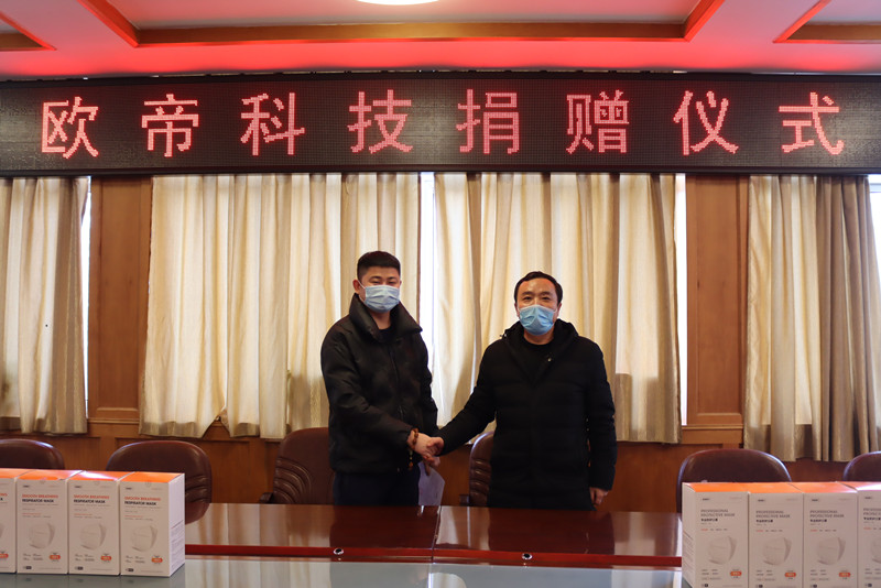 1月19日,江苏欧帝科技为我校捐赠一万只N95口罩,助力学校进一步做好常态化疫情防控工作。捐赠仪式在学校行政楼三楼会议室举行,欧帝科技负责人,院长安建平出席捐赠仪式,疫情防控办、教务处、保卫处、国资与后勤处等部门负责人参加了捐赠仪式。