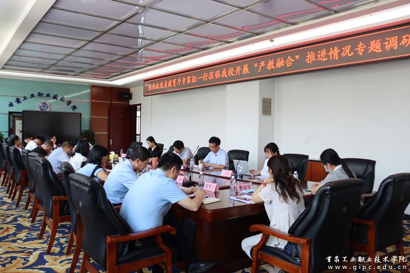 调研组肯定了我校“产教融合”取得的成绩,认为我校对“产教融合”概念理解透、对“产教融合”目标认识深、对“产教融合”推进思路清。调研组同时指出,“产教融合”国家非常重视,是“技能甘肃”的核心,也是省部共建、整省推进的核心,职业院校要紧跟国家和甘肃省“产教融合”相关政策,以“产教融合”为抓手,围绕当地产业发展现状、区域经济发展对人才的需求,积极调整学校办学策略,围绕地方支柱产业发展特色专业,先行先试,把职业教育办出学校特色、区域特色。