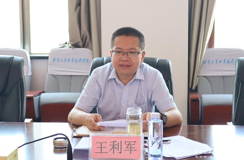 会上,王利军代表学校对调研组的莅临表示热烈欢迎,简要介绍了学校基本情况后,从产教融合开展情况、产教融合取得的成效、产教融合存在的问题、产教融合推进工作建议四个方面对学校产教融合工作作了汇报。