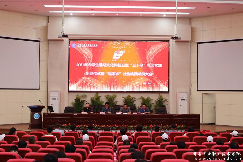 为庆祝中国共产党成立100周年,落实共青团中央《关于开展2021年全国大中专学生志愿者暑期文化科技卫生“三下乡”社会实践活动的通知》要求,引导和帮助青年学生上好与实践相结合的“大思政课”,7月8日上午,校团委组织举行了2021年大学生暑期文化科技卫生“三下乡”社会实践活动出征仪式暨“返家乡”社会实践动员大会。校党委书记杨声、党委副书记郭建忠、副院长曹惠清出席此次活动并为实践团队授旗。校团委、各二级学院团总支书记、“三下乡”社会实践团队成员代表共200余人参加活动。启动仪式由校团委书记黄晓慧主持。