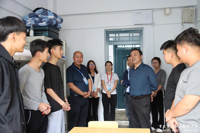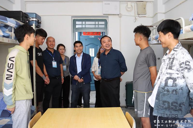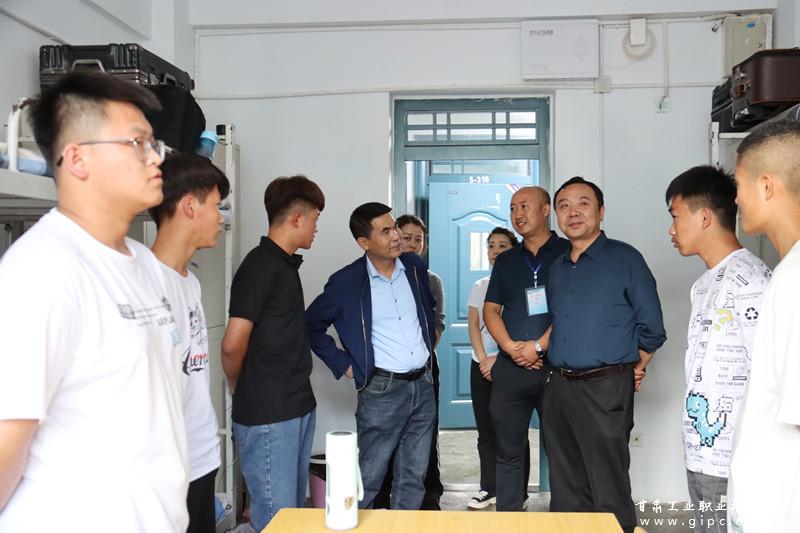 “从哪里来?选择了什么专业?气候能否适应?室友间是否已经熟悉?”每到一个宿舍,学校领导都悉心询问同学们的学习、生活情况,还不断亲切的与同学们交流兴趣爱好,鼓励同学们好好学习,夯实专业基础,培养自己的一技之长,珍惜时光,提升自我。
