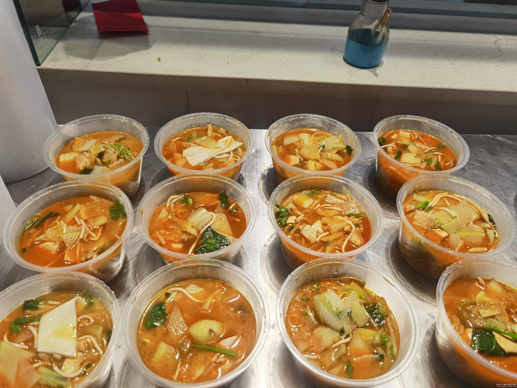 随着天水市疫情防控形势越发严峻,2021年10月30日开始我校实行全封闭管理。食堂的148位工作人员,大多数都没来得及回家取被褥、换洗衣物以及生活用品等,放下家里的老人、孩子,拖亲靠友帮忙看顾。他们在大教室里打地铺,克服临时简陋的住宿条件;每天早出晚归,凌晨时分开始处理食材备餐,到午夜时分才能休息。为了让医护人员和执勤人员在辛苦工作完毕后能有热饭热菜可吃,腾辉餐厅工作人员凌晨三点还在不辞辛劳地准备饭菜。