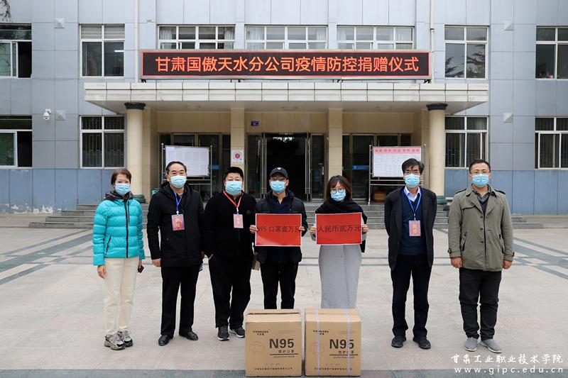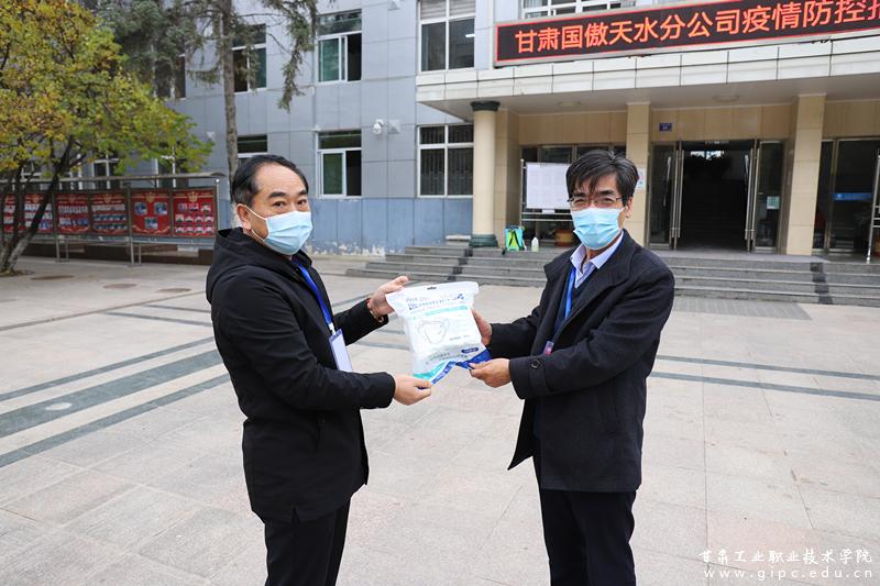 11月5日,甘肃国傲工程建设股份有限公司天水分公司经理、我校杰出校友测绘0352孙军强,代表公司向校友会捐赠疫情防控物资N95口罩1万只,人民币2万元,助力学校疫情防控工作。校友会程赟副会长,秘书长张琳及二级学院代表在校办公楼前举行了捐赠仪式。 校友的大爱无疆、无私援助,为学校师生战“疫”,增添了力量。在这寒冷的冬天,让师生们感到无比的温暖。让我们携起手来,共克时艰,抗击疫情。 (供稿/摄像:党委宣传部 编辑:李杨(男) 编审:王莹芝)