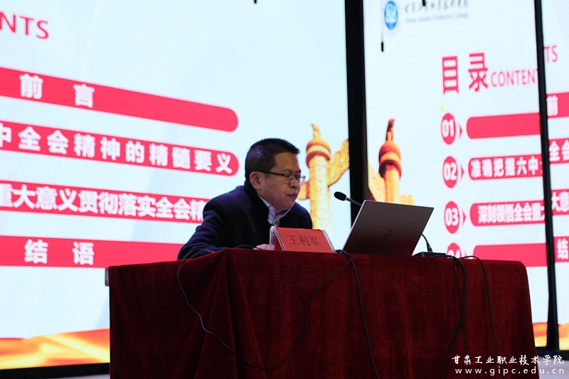 近日,副院长王利军在大学生活动中心为我院师生作十九届六中全会精神专题宣讲。