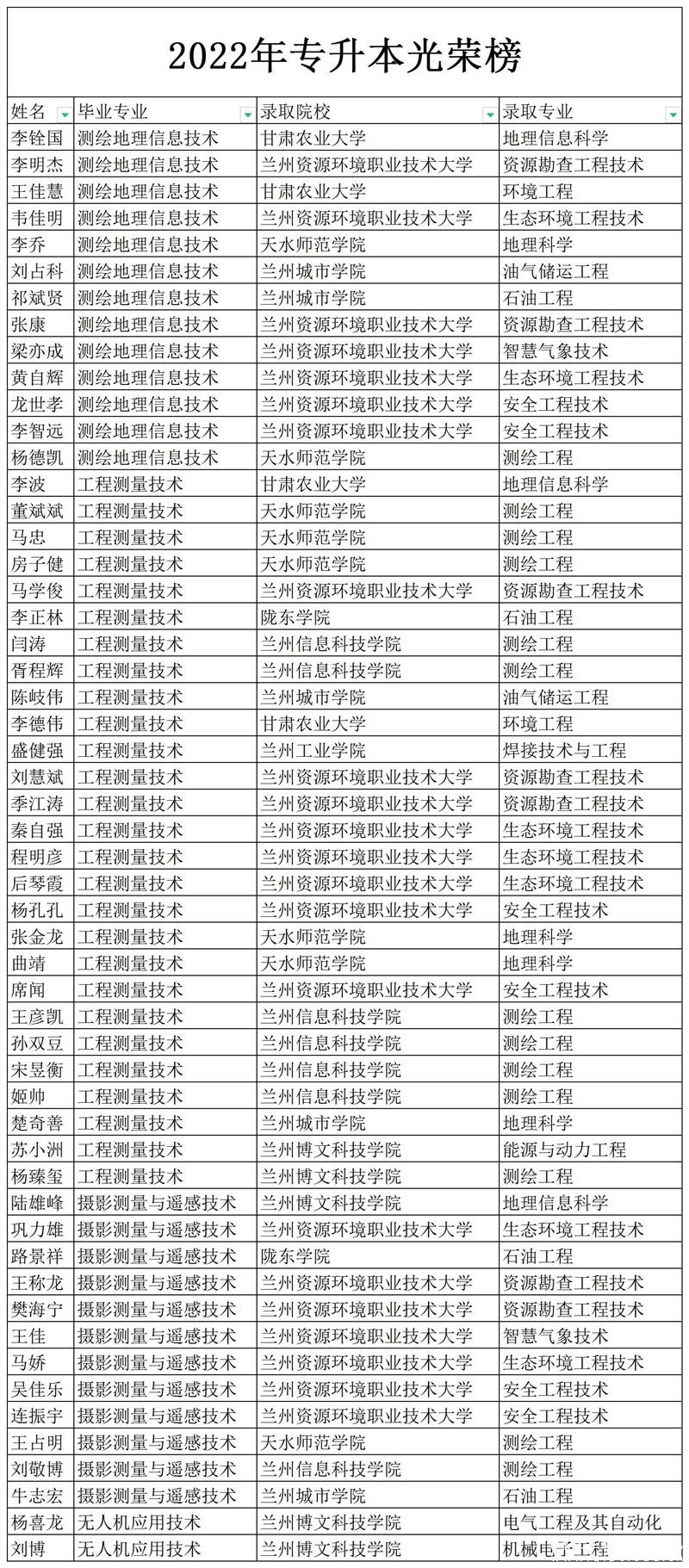 祝贺又一批测绘学子升入本科院校就读深造,希望全院在校生以他们为榜样,虚心学习,努力拼搏,在求学、就业等方面早日实现自己的理想。