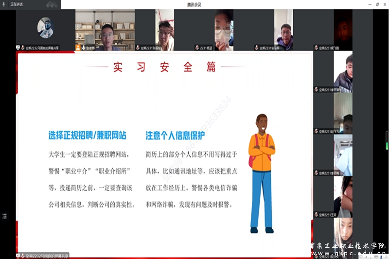 各二级学院认真组织,辅导员、班主任积极准备,认真讲授。通过开展本次主题班会活动,有效增强了学生安全防范意识和自我保护能力,在师生互动环节,同学们纷纷表示,一定会积极学习领会党的二十大精神,做好新冠病毒感染防护,为建设社会主义现代化国家贡献出自己的力量。