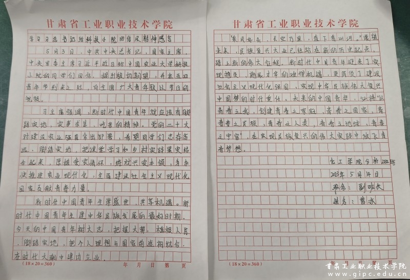 习近平总书记始终关心着我们青年,给予着我们信任,知道我们的所思所盼,这些都始终让我们铭记于心,深感责任重大!正如习近平总书记所说,我们新时代的中国青年,生逢其时,重任在肩,施展才干的舞台无比广阔,实现梦想的前景无比光明。而实现中国梦是一场历史的接力赛,我们当代青年要在实现民族复兴的赛道上奋勇争先。坚持深耕农业农村一线有我、服务农业农村现代化有我、成才报国有我、强国富国更有我!