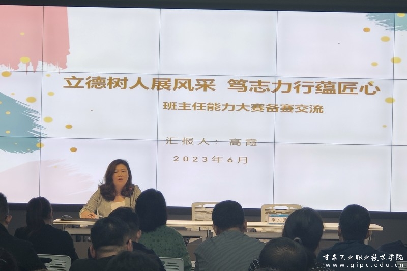 专题讲座中,我院党支部副书记,甘肃省名班主任工作室主持人高霞以《立德树人展风采,笃志力行蕴匠心》为题,以介绍2021、2022、2023年全省职业院校班主任职业能力比赛文件异同点为背景,结合自己执裁2022、2023年全省职业院校中职组班主任职业能力比赛的经历以及所见所闻,所思所想,通过分享典型案例,就如何提高我校辅导员(班主任)参加全省大赛的能力和水平,从研读文件,做好初赛准备、班级建设方案的6有、班级育人故事的3个具备、班级活动方案的3个融合、模拟情景处置的应对等方面提出了自己的真知灼见。
