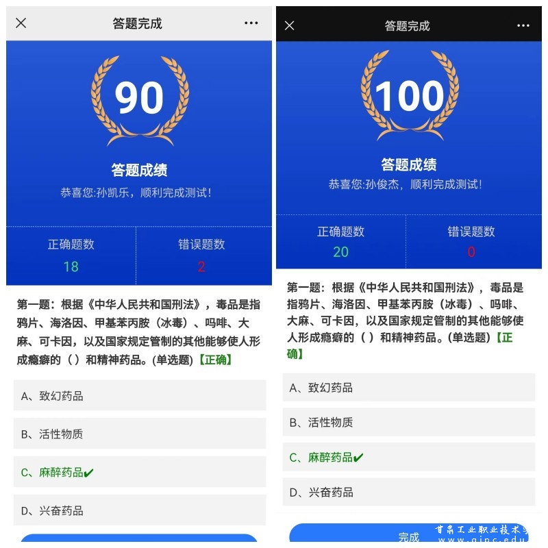 为保护和促进青年健康成长,加大校园禁毒宣传力度,筑牢思想防线,切实提高师生识毒、防毒、拒毒意识和能力。近日,我校组织广大学生积极参与甘肃省第四届大学生禁毒知识网络答题活动。