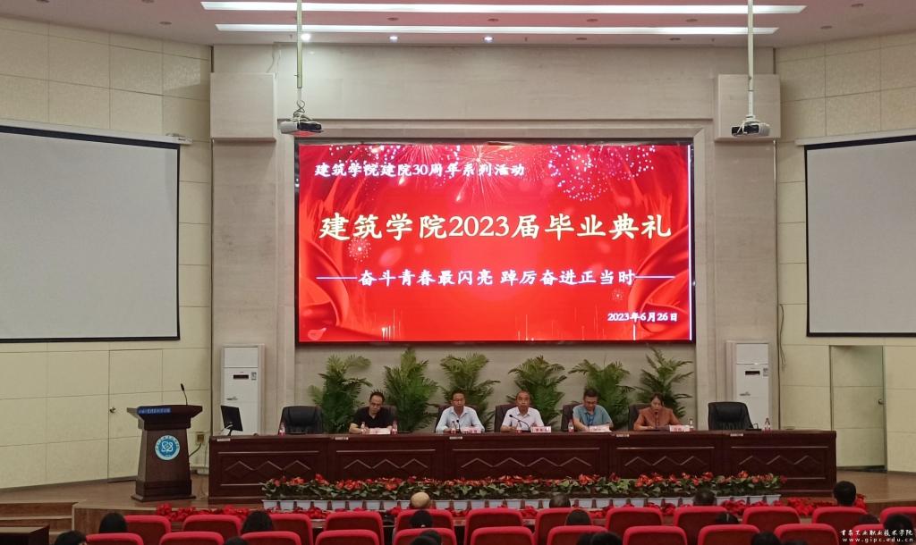 奋斗青春最闪亮,踔厉奋进正当时。6月26日,建筑学院2023届学生毕业典礼在图书馆智敏报告厅举行。学工处处长李东浩,建筑学院党支部书记、院长谢延友,建筑学院党支部副书记薛宝恒,建筑学院党支部专职组织员王鑫出席,学院辅导员、教师及2023届毕业生等200余人参加典礼,活动由建筑学院副院长邵转吉主持。
