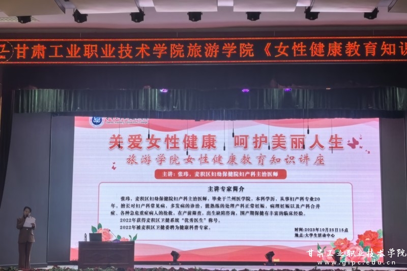 为进一步加强青年学生生理、心理健康教育,树立“自尊、自爱、自立”意识,增强自我保护能力。10月25日下午,旅游学院邀请天水市麦积区妇幼保健院张玮主任在大学生活动中心为学院全体女生作了一场以“关爱女性健康 呵护美丽人生”为主题的女性健康知识讲座。讲座由旅游学院院长曹瑞琴主持。