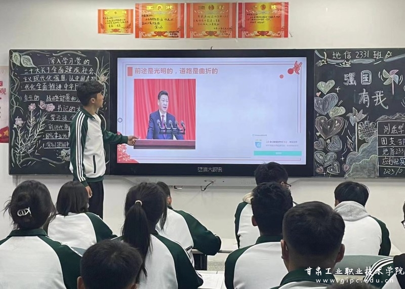 团课上,团支书围绕第三专题“强国复兴”主题,利用PPT、视频等生动有效的方式来帮助同学们学深学透习近平新时代中国特色社会主义思想。引领团员和青年深入学习党的二十大关于全面建成社会主义现代化强国、以中国式现代化全面推进中华民族伟大复兴的战略部署和习近平总书记的相关重要论述,学习了解新时代新征程党和国家事业发展的目标任务,深刻理解中国式现代化是强国建设、民族复兴的唯一正确道路。