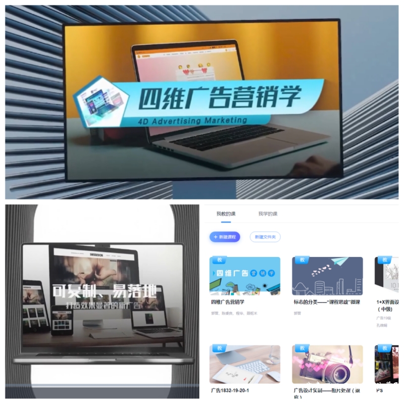 期间,艺术学院教师深入企业一线,求真创新,与快印客讲师团队付出了巨大努力,从申报到完成历经5个月时间,建成《四维广告营销学》教学资源库,并于2023年11月8日正式上线泛雅平台。