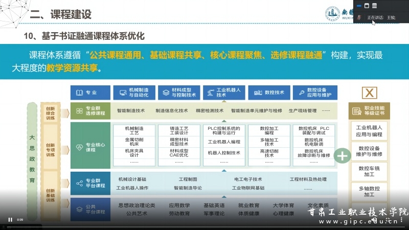为进一步加强教师教学业务学习,促进教学能力提升,11月22日下午,教学督导办公室联合教务处邀请无锡职业技术学院教授、高级工程师王骏为我校教师进行了职业教育“课程开发”“教学设计”“教学评价”专题培训,培训以在线直播形式开展,本学期授课的所有专任教师、校内兼课教师、外聘教师参加了此次培训。