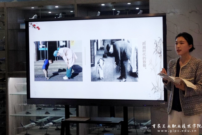 此次活动由空乘专业董洁老师展示形态礼仪——鞠躬礼,重点让学生熟练鞠躬礼的实施以及不同角度的鞠躬所蕴含的含义。董洁老师从礼仪的起源、特点、实施、注意事项等方面展开,通过讲解、示范、视频展示等形式让学生从不同角度明确旅游行业服务人员的素质要求。