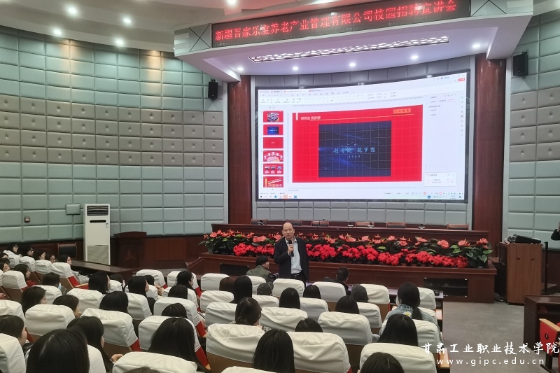为切实做好2022级智慧养老专业学生岗位实习、就业工作,有效拓宽学生实习就业渠道。 4月9日,康养学院邀请新疆吾家乐宝养老产业管理有限公司养老总院院长王辉进校开展企业宣讲。2022级智慧养老专业学生参加,宣讲会由天水市卫生学校副校长钱斐主持。