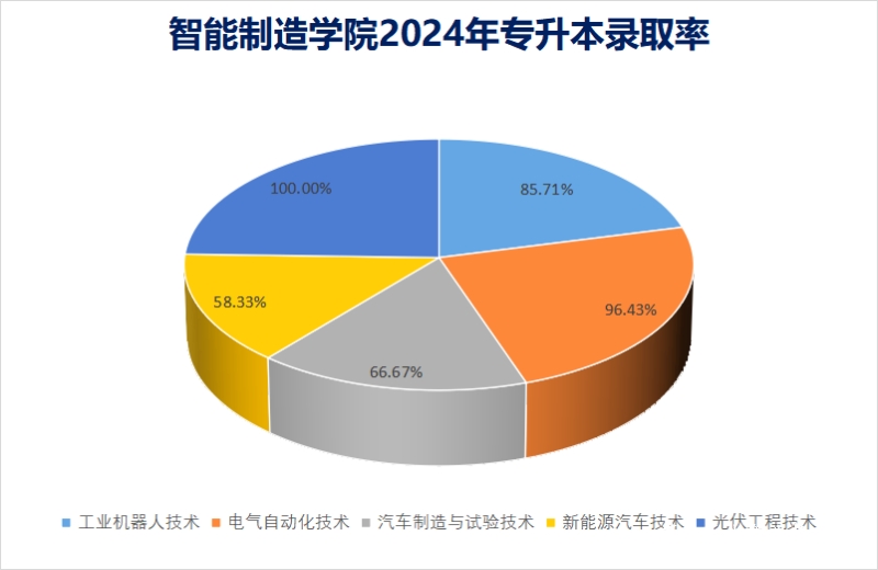 甘肃省2024年普通高校专升本录取工作于5月24日全部结束,智能制造学院共57名学生参加考试,经过免试入学、建档立卡专项、普通录取、征集志愿等环节,共有50名学生分别被兰州理工大学、天水师范学院、兰州工业学院、陇东学院、兰州石化职业技术大学、兰州资源环境职业技术大学、兰州博文科技学院、兰州信息科技学院等8所本科院校录取,录取率达到87.71%。其中,电气自动化技术专业上线率96.43%,工业机器人技术专业上线率85.71%,光伏工程技术专业上线率100%、汽车制造与试验技术上线率66.67%、新能源汽车技术专业58.33%。