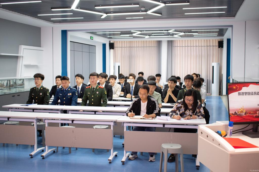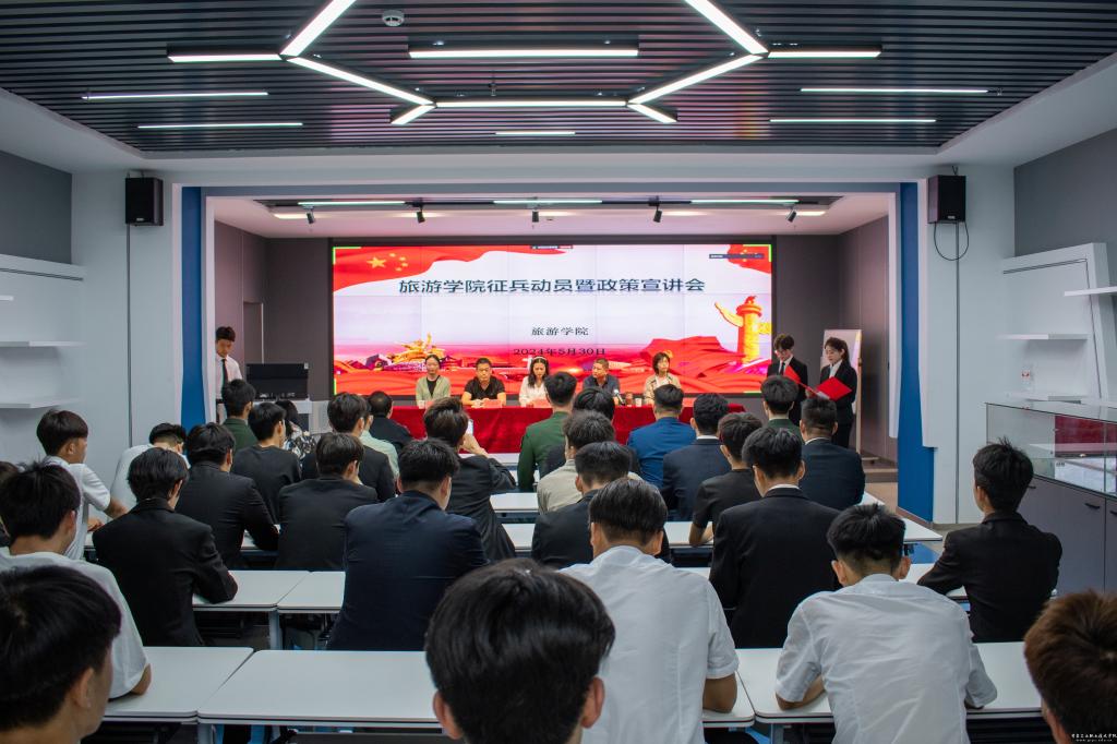 为进一步激发青年大学生投身军营、报效祖国的热情,近日,旅游学院在智慧旅游实训室组织开展了2024年秋季征兵动员暨政策宣讲活动。学校武装部副部长赵卫,旅游学院党总支书记李少华、党总支副书记侯海荣、相关辅导员、入伍专干及部分学生参加会议。