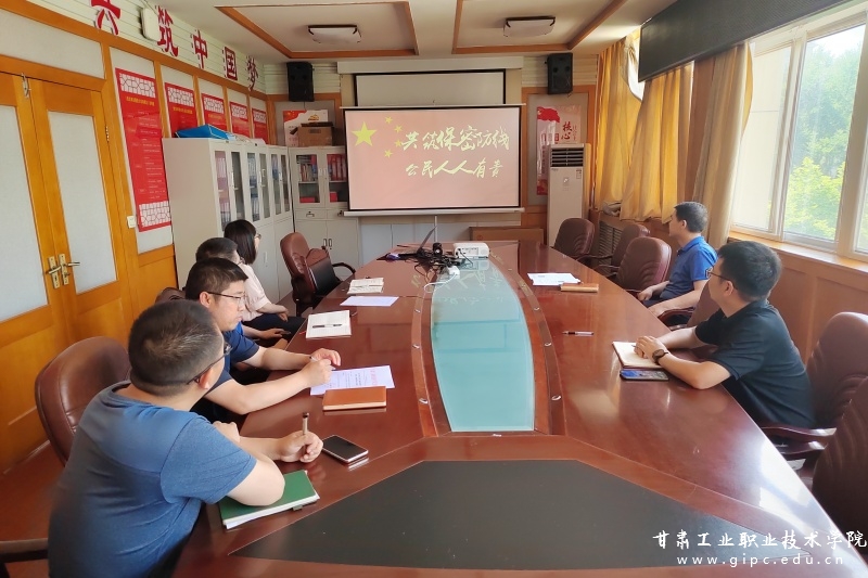 会议组织全体人员共同观看了全国地勘行业核技术应用产教融合共同体成立大会视频,通报了全省高等职业学校办学达标情况以及甘肃省“双高计划”建设绩效评价结果,学习了《pg娱乐电子游戏教职工考勤管理办法》,并结合党纪学习教育活动,开展了保密宣传教育。同时,就近期学生离校实习等重点工作进行了安排。